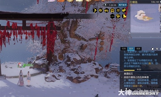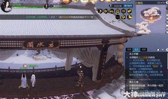 打开梦渡云桥,点(星夜同行)前往到师姐处,按Z交互选同行--远途·结伴私游--云樱佳期