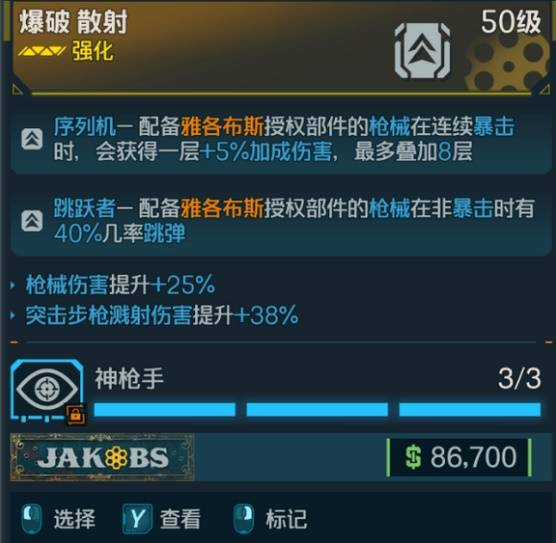 本作雅阁布斯的枪非常给力,如果配合对应模组,+40%跳弹几率和+8层5%伤害,我愿称之为神!