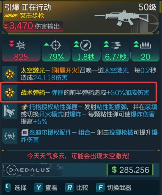 正在行动,目前下挂伤害用脚填数值的情况下,这个太空激光更是逆天,激光甚至高达2秒,而每0.2秒就出伤,如果再刷出红框中的第二金词条,更是逆天存在,因为测试下挂的一发弹药也吃50%加成
