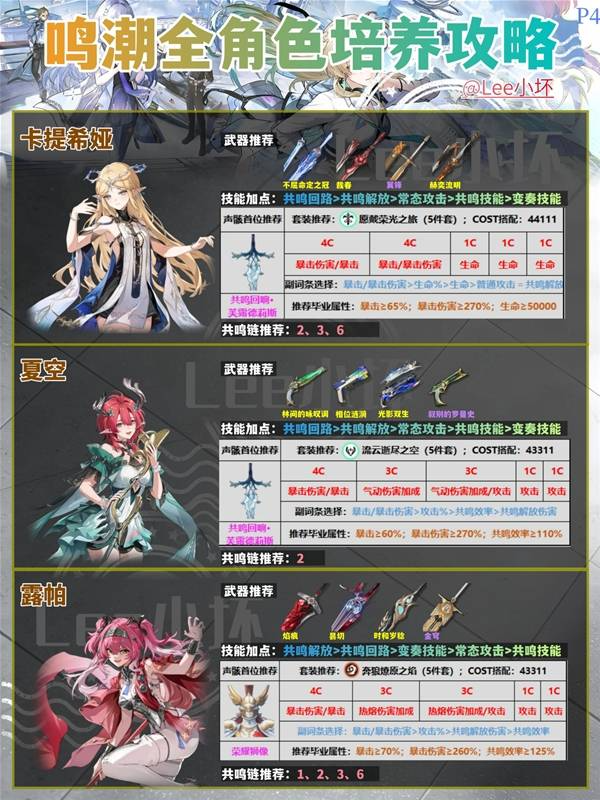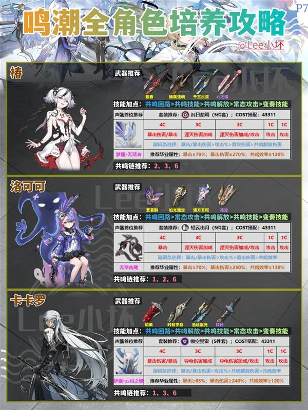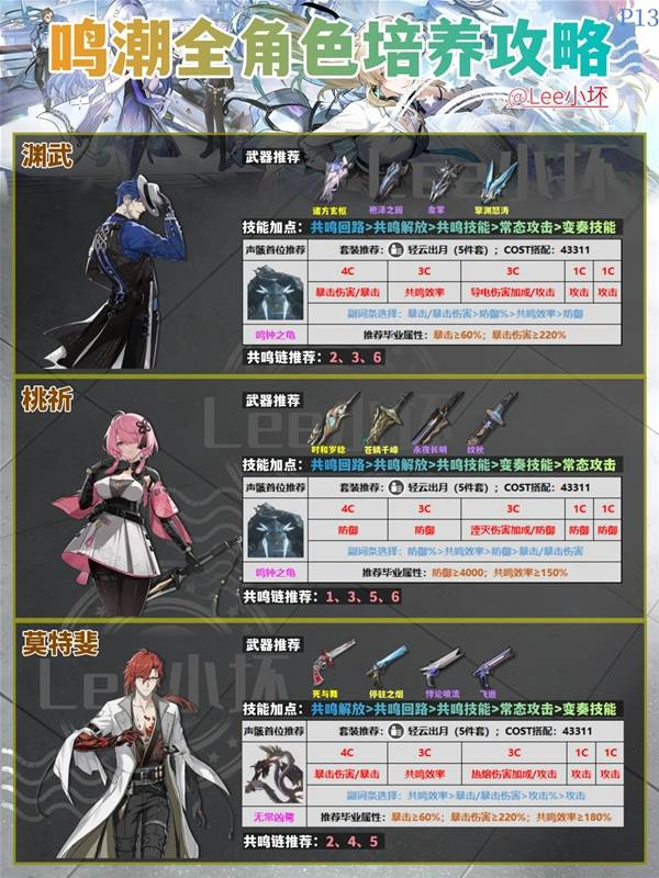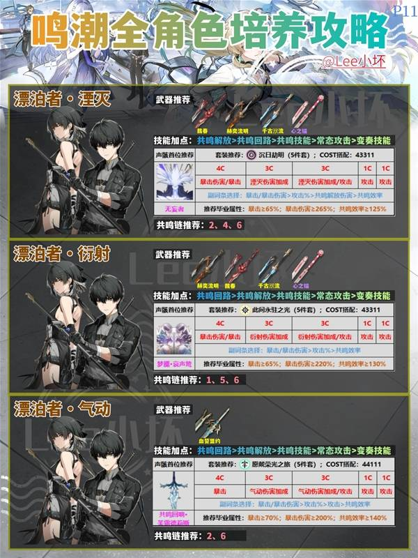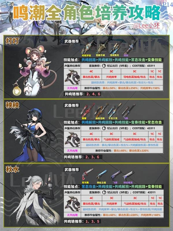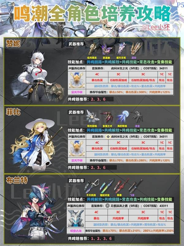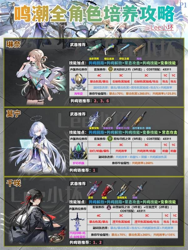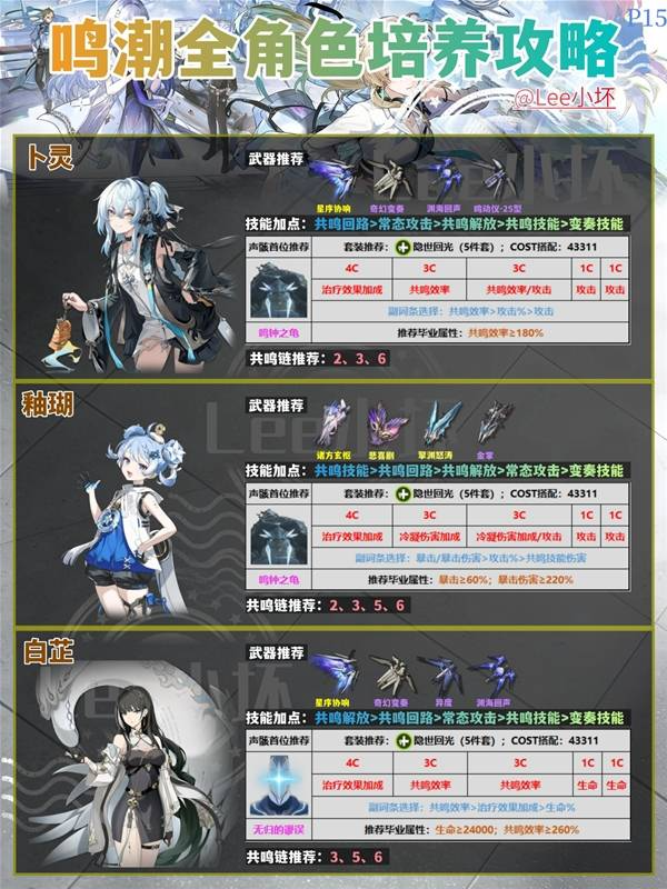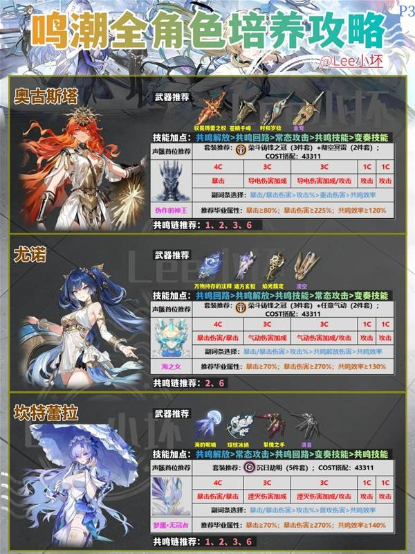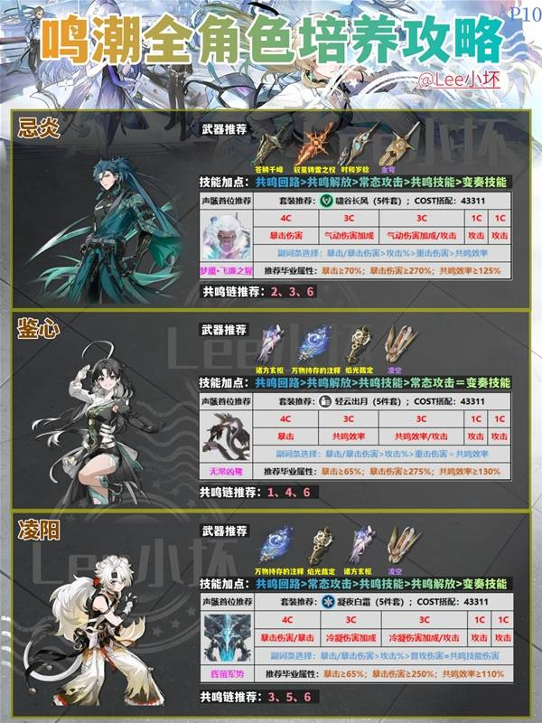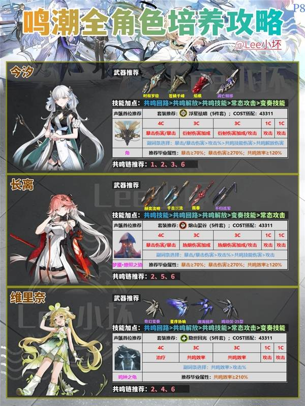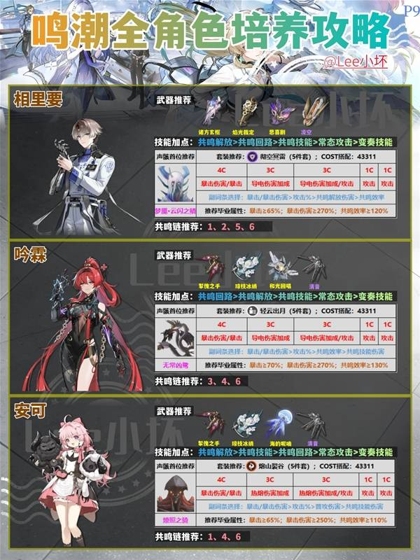 《鸣潮》3.0版本上线了全新角色琳奈,那么在当前版本下各个角色应该怎么培养呢?下面请看由“Lee小坏”为大家带来的《鸣潮》3.0版本全角色培养攻略,希望可以帮助到大家。