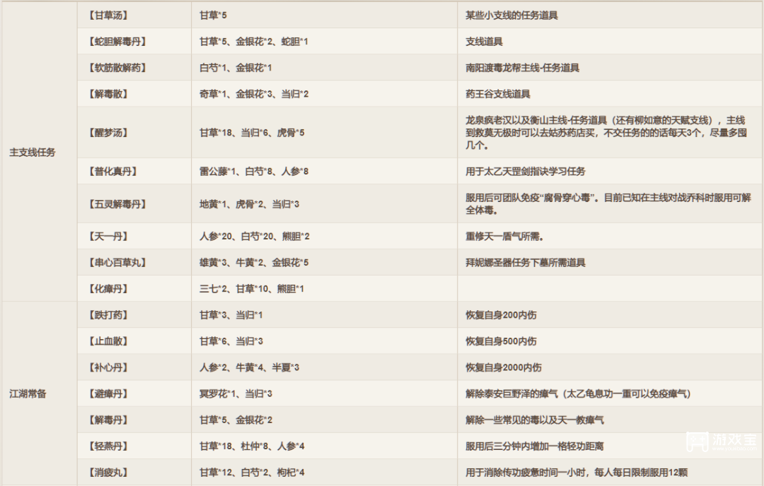 烟雨江湖丹药配方大全分享