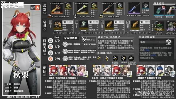 《明日方舟终末地》秋栗是一名在特定队伍有着不错发挥的四星角色,那么该角色具体要怎么养成呢?下面请看由“猫冬MT”为大家带来的《明日方舟终末地》秋栗全面养成攻略,希望可以帮助到大家。