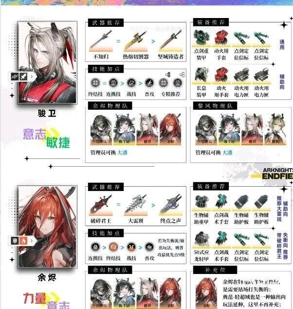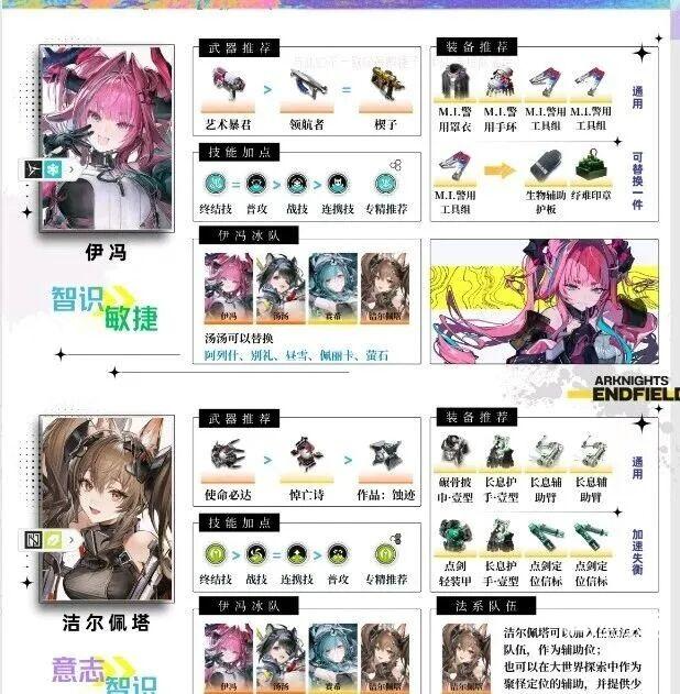 二、明日方舟终末地1.1版本全角色配装配队补充说明: