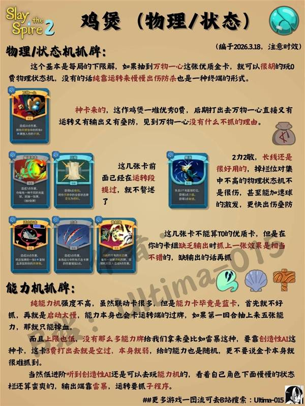 《杀戮尖塔2》故障机器人的卡组玩法比较丰富,有多种流派可以体验,还不知道如何搭配的玩家请看下面“Ultima-015”带来的《杀戮尖塔2》机器人构筑汇总,希望能够帮助大家。