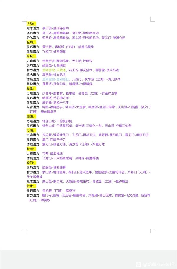 《龙胤立志传》六维潜力功法汇总