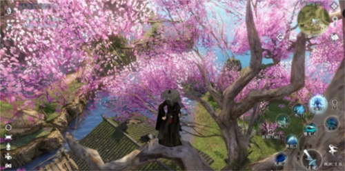 2、使用探索技能“风起云涌”把周围的小鸟全部赶走,然后跟着引导再次来到桃溪村(940.1093)坐标位置,寻找依霜npc靠近点击对话。