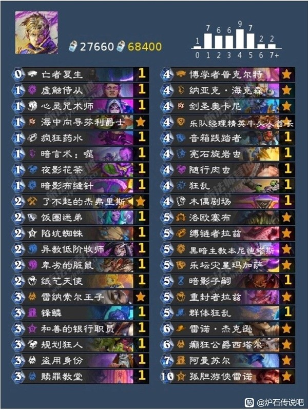 下面贴一套目前狂野的宇宙暗牧(携带了很多解场牌 后期可以靠两个拉兹完成斩杀)
