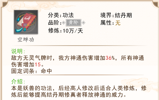 狂金诀:使用金属性神通概率造成额外伤害,并且能增加易伤层数。