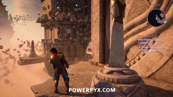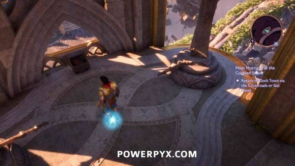 此谜题需要旋转6个雕像,使3对雕像正面两两相对,以解锁灯塔内圆形大厅的音乐室,然后把2个光球带进音乐室,其中一个会自动出现,另一个在门外上层的两个雕像之间(需要完成第八章主线任务【荒疫暗影】并招募塔什和埃姆里希成为同伴后才会出现)。放好2个光球后,会出现一个传送门,穿过传送门到达圆形大厅上方的露台,与物体互动并跳下露台即可。