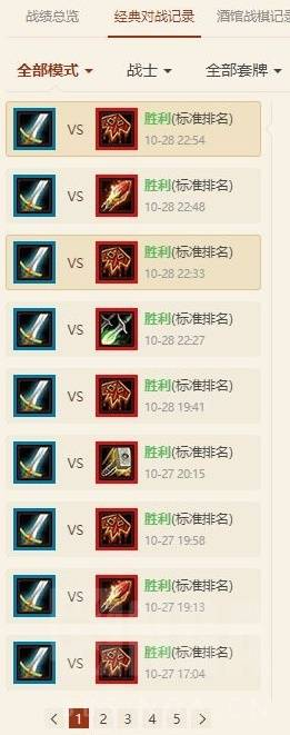 术士现在遇到基本都是轮盘术了,注意留剑刃风暴这种解巨人的解牌就好了,再就是其实后期防战不是很难打,主要找牛头人拿奥丁,还有锻造10费刀,不过对面如果8费轮盘确实不好处理,只能拼455龙或者王冠,我有一把就是轮盘最后一回合,我场被清了,这个时候脑海里想起铁窗后的朋友,人一定要有梦想,然后王冠出两螺丝,再拍一个,三螺丝赢。