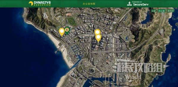 打开手机进入网络,选择【金融与服务】,打开介绍词为【洛圣都奢华办公地点中的专家】的网站即可看到所有办公室的购买信息与位置。