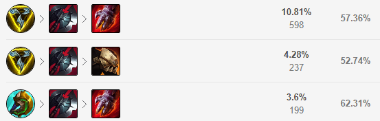 纳尔的神话装备选择三相之力,普攻提升攻速能够更快速地追人。咒刃搭配上Q技能可以用普攻打出爆发伤害。黑切属性全面,能够切割对手护甲,还有血量支撑。第三局可以选择血手用来增加容错率,亡者的板甲提升移速,增加跑图能力。