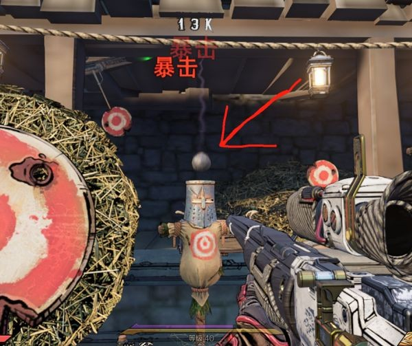 如图,不暴击第一枪伤害是2685,(暴击后触发了角色被动技能,增加了一点伤害)暴击后变成7823(暴击伤害)+2712(非暴击伤害)。同时可以看到,对稻草人暴击的同时,爆炸的AOE伤害对旁边的靶子也造成了伤害。