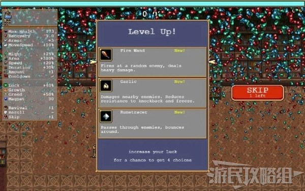 拾取到红色经验石就是开武器盲盒的时候了,没有拿到目标武器/道具的话会相当难受(等级大概会提高到120级,用来刷金币也不错)。
