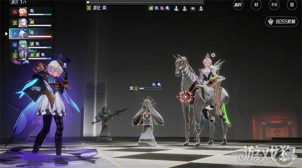 不过因为我们此时会有4位角色都带有免疫,所以她的标记大概率会空,或者只有1个,我们通过酣梦睡眠控制去避免被控,同时全力输出就可以进入3阶段,在3阶段当两朵花没有死时boss会处于无敌状态之中,1朵花死亡boss会进入3回合倒计时,结束后会复活花朵并回复血量,这里利用酣梦的睡眠拉扯,把两朵花都打到丝血,最后夜离大招锁定boss一次性收掉两只花,重复几次就能顺利击败。