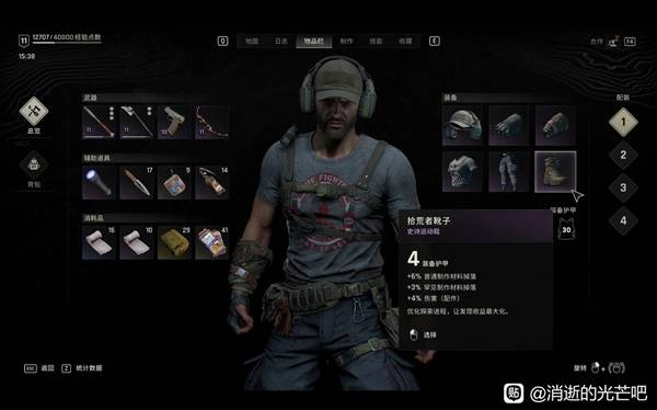 基本上,你有两三把蓝色品质或紫色品质模改武器,一把弓箭,20个绷带、飞刀、箭矢,10个燃烧瓶、开锁器,5个鞭炮,就可以出去跑图,解决遭遇事件、做做支线任务或主线任务,提升等级了。