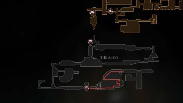 进入深渊区域后,从南边的长椅出发,往右进入全是虚空怪的区域,一直往右走,直到遇见能往上走的墙壁。