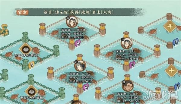 4、玩家可派遣队伍进行采集,或者以抢夺的方式进攻其他玩家的采集点,成功后可以获得对方已采集龟甲的一部分。