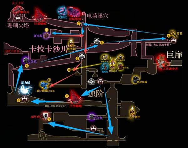 《空洞骑士丝之歌》钢魂模式是游戏中的高难模式,想要在钢混模式速通更是难上加难,下面请看由“想看星星啊_”为大家带来的《空洞骑士丝之歌》钢魂模式速通路线分享,希望可以帮助到大家。