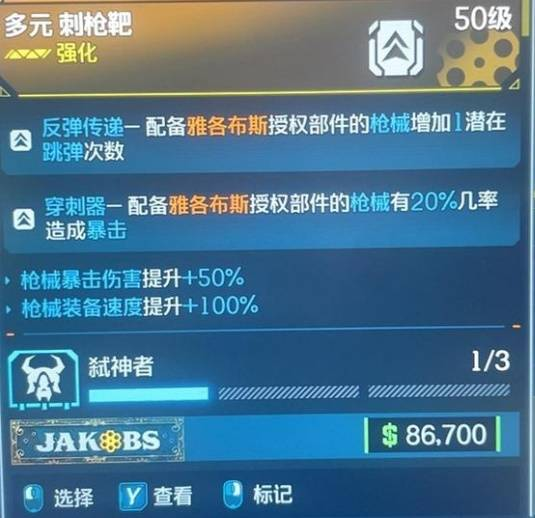其次就是强化套件了。这一套刚需雅各布斯配件的增加潜在跳弹,不然弹几下就没了,稀有度倒无所谓,紫的也行。