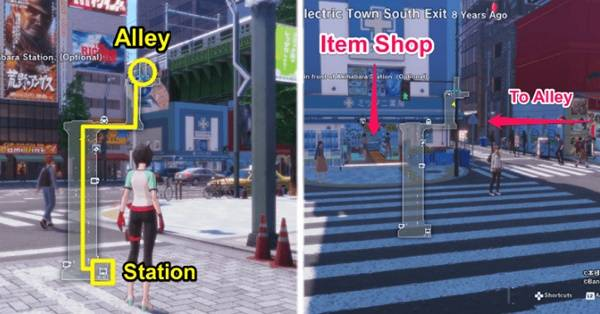 4.到达秋叶原站:电气城南口,沿着小路上到人行横道。过马路进入物品商店旁边的小巷。