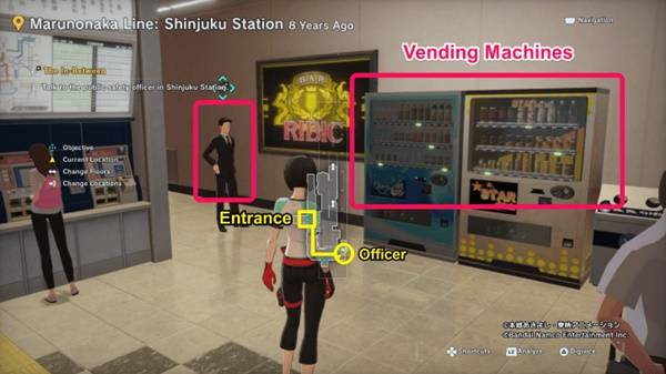 7.在地铁中,前往地图上公安人员的位置。你会在两台自动售货机附近找到他。