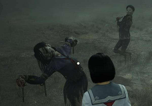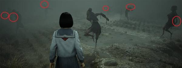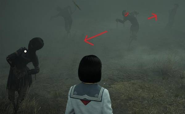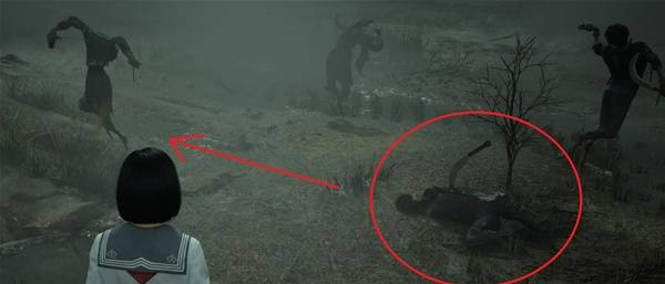 这题很明显是讲情敌,看完谜题往前走有一只明显在所有稻草人中间,非常可疑,近看嘴上还笑的异常开心,背后是男稻草人很像修,而修指的或面对的方向,对面有一只女稻草人,诡异稻草人在两人之间把修挡住,对女稻草人露出诡异笑容。这就是写谜题的人的心情,觉得诡异稻草人是一个很干的存在,这三个稻草人外型也可以看见修、雏子、凛子,并对应开场就暗示过的三角关系。