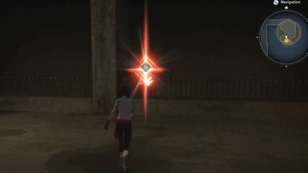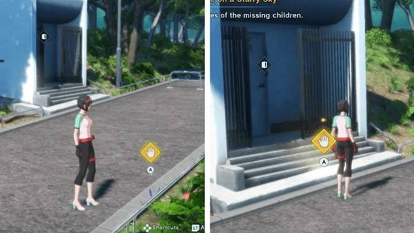 2.与母亲交谈后,与标记的斑点互动以寻找痕迹。然后,走楼梯前往社区森林,对空地上的盒子使用数码攻击。