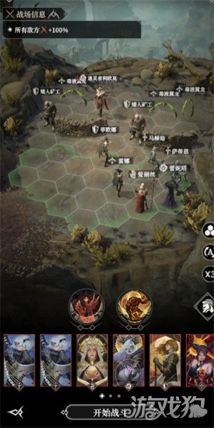 战斗期间玩家总共有两种战略方案,首个方案是玩家强化暗奶的控制效果,直接通过平移角色的方式,将暗奶移动到左侧,直接控制左上角的近战骷髅,随后,玩家需要携带寂灭这个角色,通过开局的全场眩晕以及全场吸引,来减少前期承伤压力。