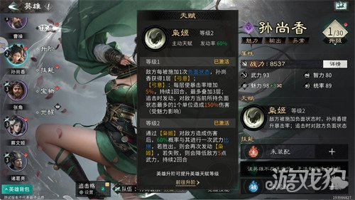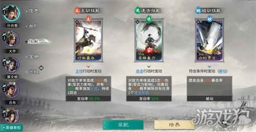 二阶段的孙尚香的名将特点是受到暴击伤害提升100%。由于以主动技能触发天赋打输出的英雄,其攻击频率并不高,且游戏中的技能暴击率最高只能叠加到20%,所以这里依旧是选择追击英雄更为合适。
