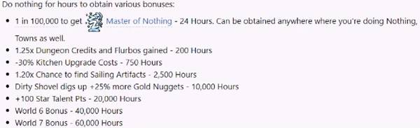 该岛会记录无任何事情的(Nothing)挂机时间,挂机到一定时长会给予奖励。奖励如下图
