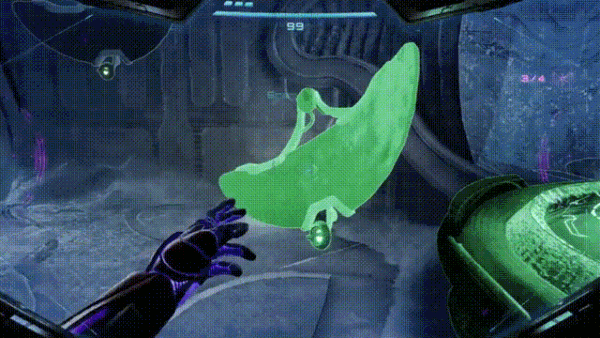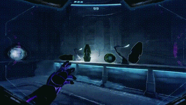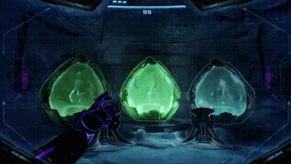 返回准备走廊,打开附近的房门进入一个大房间,用心灵套索解锁北侧大门并前往储物舱(Storage Bay)。在储物舱的中央平台(周围摆放着多个格里弗样本),使用火焰射击(Fire Shot)解冻墙上的起重机,会露出带有密码的格里弗样本,扫描即可收集碎片。
