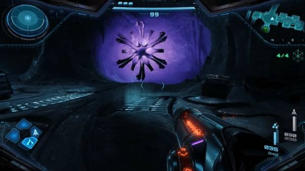 首先找到心灵锁右侧带有裂纹的强化玻璃,击碎玻璃后进入后方的准备走廊(Staging Corridor)。走到走廊尽头的房间,找到被闸门挡住的变形球通道(Morph Ball vent),击碎闸门后滚动通过,扫描桌上的直立容器即可获得密码碎片。