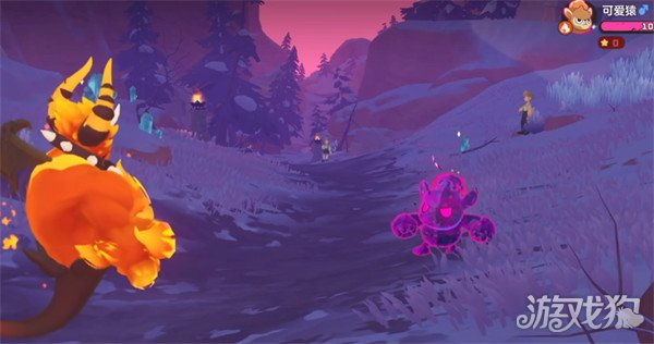 想要获得可爱猿的话,大家可以多去野外溜达,要是大晚上的发现这只猿的话,那就可以开始自己的进攻啦!首先这只可爱猿通体是紫色的,并带有一点透明状,这时看到后就直接上去一顿攻击就好。不过要是玩家的等级比较高,并且有更高级的精灵球,那就直接投掷就行,同样可以获取!