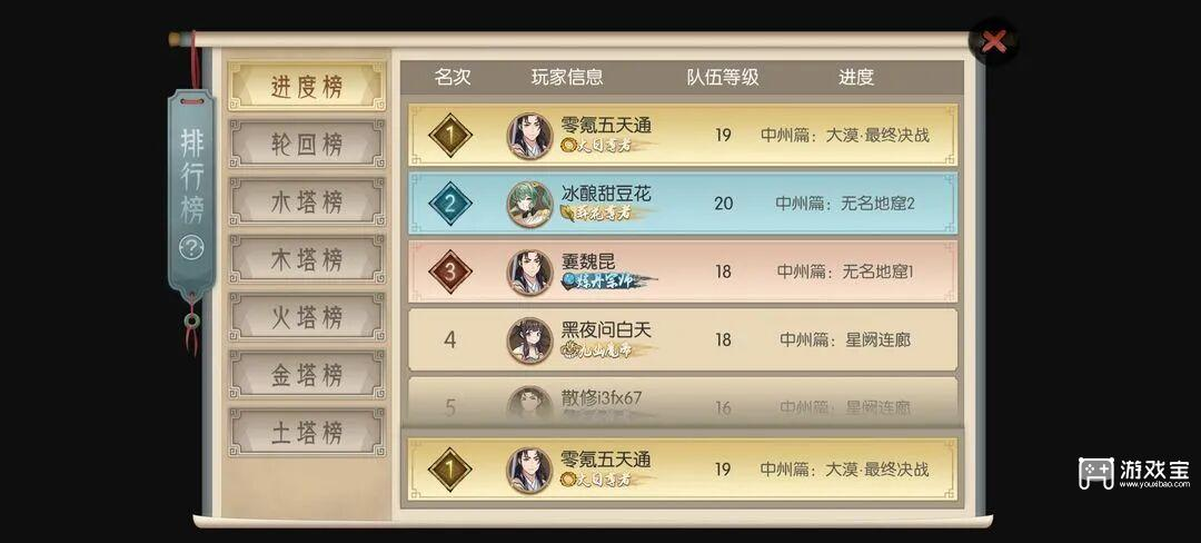 等级上来之后拳打冰魔——过完凤凰地图,探宝可以抽到五级装备(看到城镇NPC有五级装备再去抽),灵髓抽抽,抽到公孙灼,然后补补五级装备,脚踢琉璃,干翻天魔。(轮回对伤害不够就把天悟升星,第三天按照此攻略的进度已经攒了3次80次的自选了)