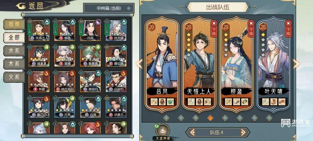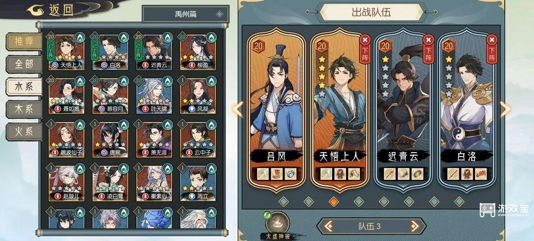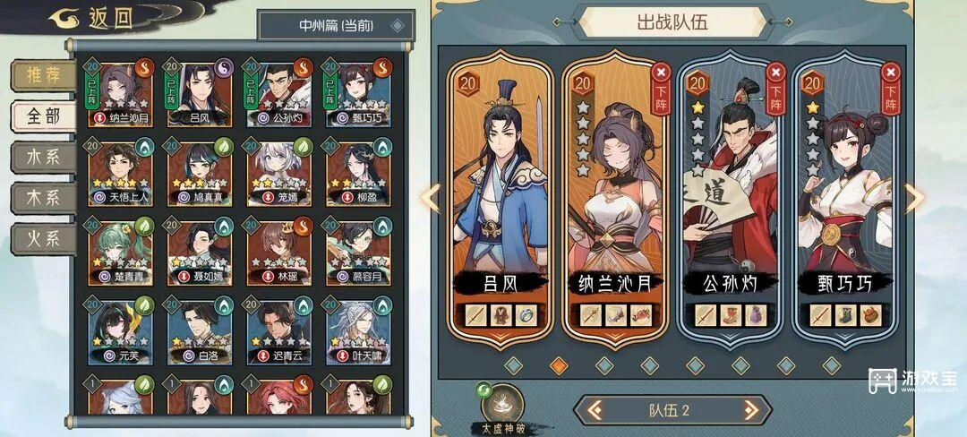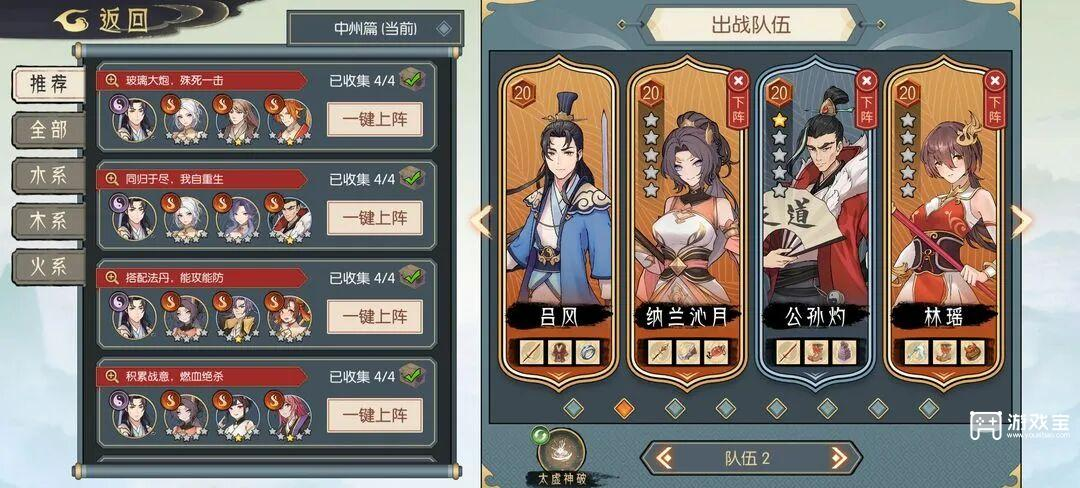 第四天打到不好过的地方,然后去刷水塔(用下面这个队伍,开局刷攻击回血的塔神诀,然后刷图的技能叠浪>冰刃),优先把水神器攻击+冰刃伤害升到5+。
