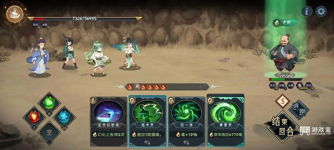 手法:1回合复制青青的玄天幽藤,其他数值加毒打出,最后打百分比毒
