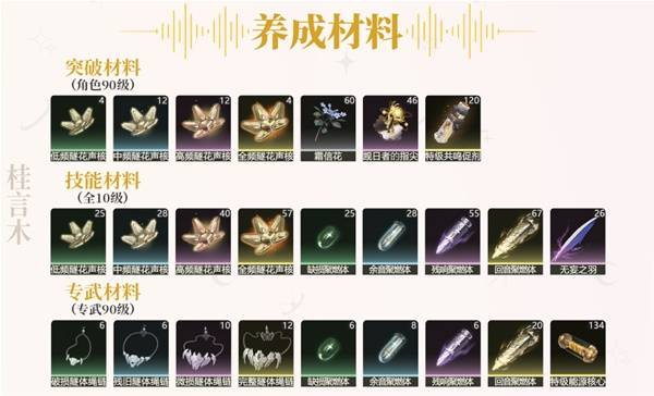 《鸣潮》3.0版本将会推出新角色琳奈,很多喜欢这个角色的玩家想要知道她突破需要哪些素材,下面请看“桂言木”带来的《鸣潮》琳奈突破材料需求一览,希望能够帮助大家。