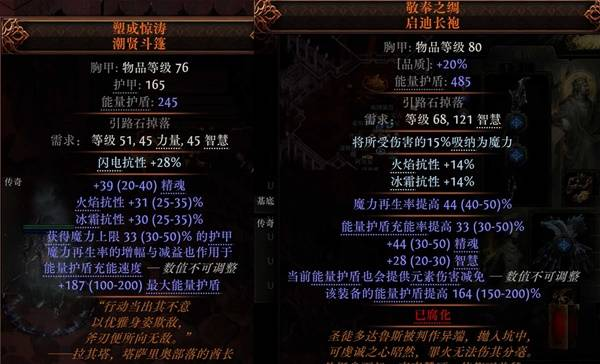 启迪长袍则提供了额外的元素减伤和魔力再生,还有更高的精魂,更高的护盾面板。