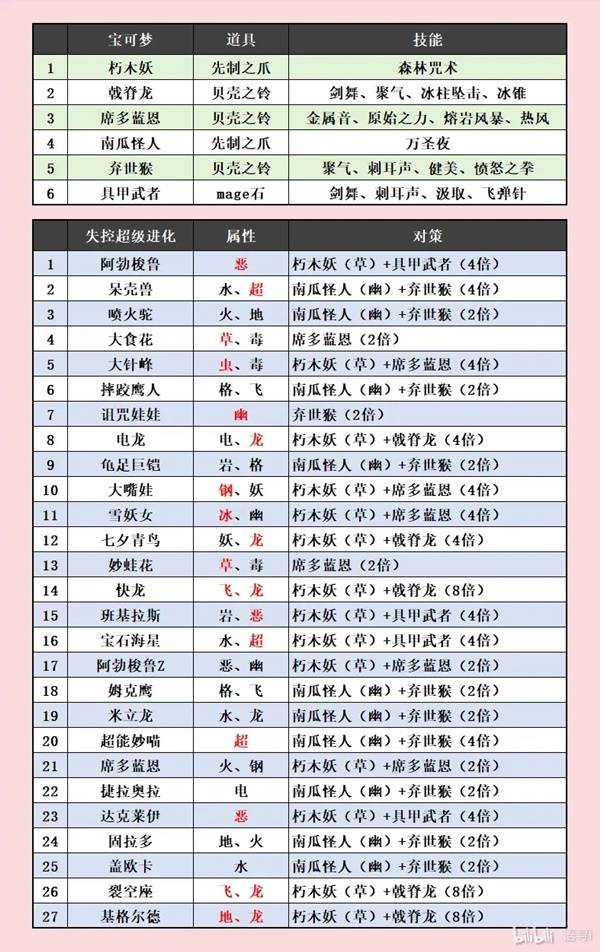 1、朽木妖,草属性弱点工具人,携带道具先制之爪,让我方冰、火、虫系打手伤害加倍