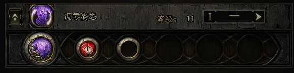 凋零姿态:持续时间延长,凋零姿态的技能等级按你现在智慧能达到的最高等级选取,我这里是11级需求74智慧,配合精魂头的在场效果翻倍效果,凋零姿态的范围几乎能够覆盖全屏幕,能够在10秒提高30%的敌人承受伤害增加