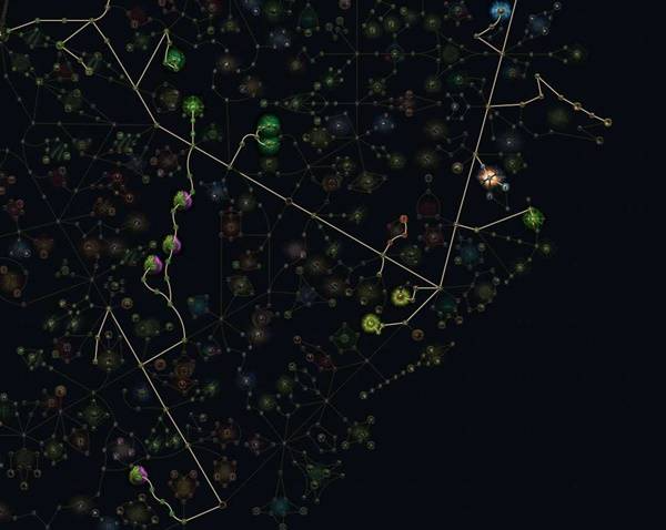 这是98级的天赋树,前期没有足够天赋点可以不点最上方的珠宝孔以及最下方珠宝孔附近的天赋