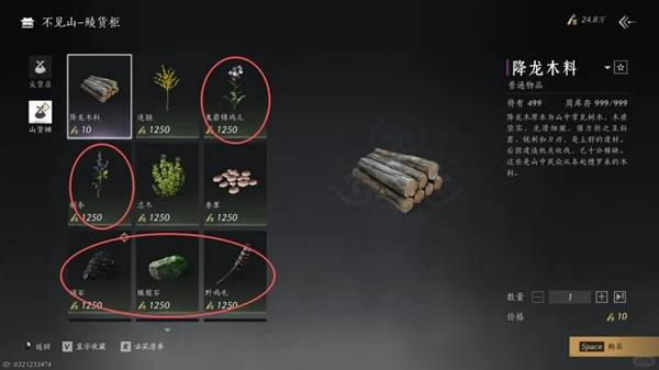 以上所述的商店的材料也可以在地图中通过采集获得,商店购买为最省力的方法