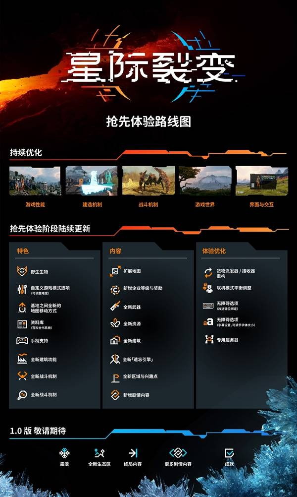 《星际裂变》目前已经以EA状态发售,很多玩家想要知道后续会如何更新,下面请看官方带来的《星际裂变》后续更新路线图,希望能够帮助大家。