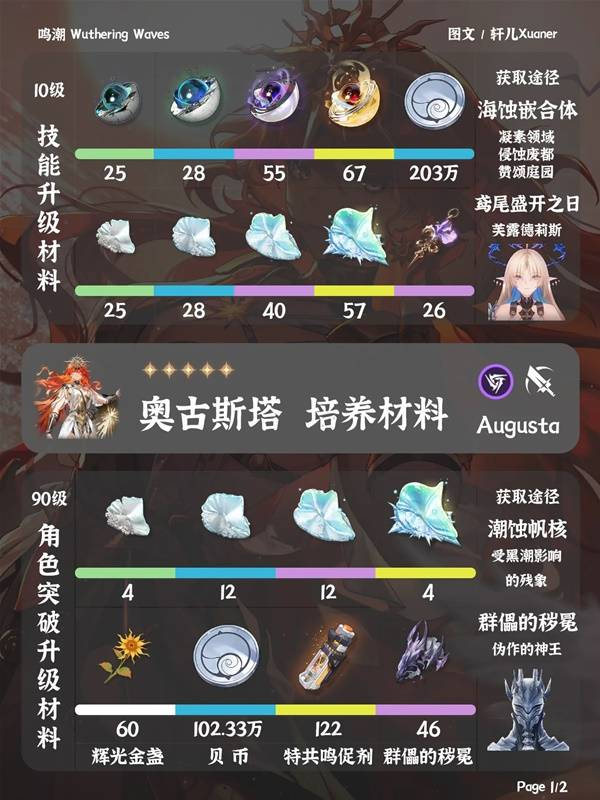 《鸣潮》中奥古斯塔这个角色究竟都需要哪些材料呢?有着这个问题的玩家请看下方由“轩儿Xuaner”为大家带来的《鸣潮》奥古斯塔养成材料需求一览,希望能够帮助到大家。