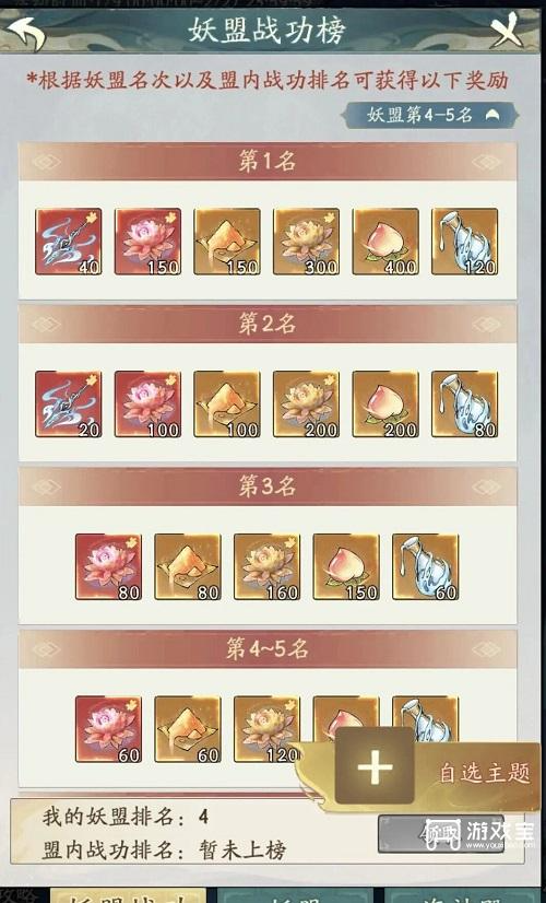 以单妖盟为独立作战单位通过宣战、集结、战斗占领各级城池逐步向中部核心区域推进,积累积分,最终以妖盟总积分排名结算奖励,核心奖励为法宝碎片等珍稀道具。