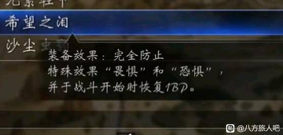 《八方旅人0》希望之泪是游戏中的视频装备,起作用可以完全防止特殊效果“畏惧”和“恐惧”,并于战斗开始时恢复1BP,那么这件装备要怎么获得呢?下面请看由“仙铃优昙华院”为大家带来的《八方旅人0》希望之泪获取方法,希望可以帮助到大家。