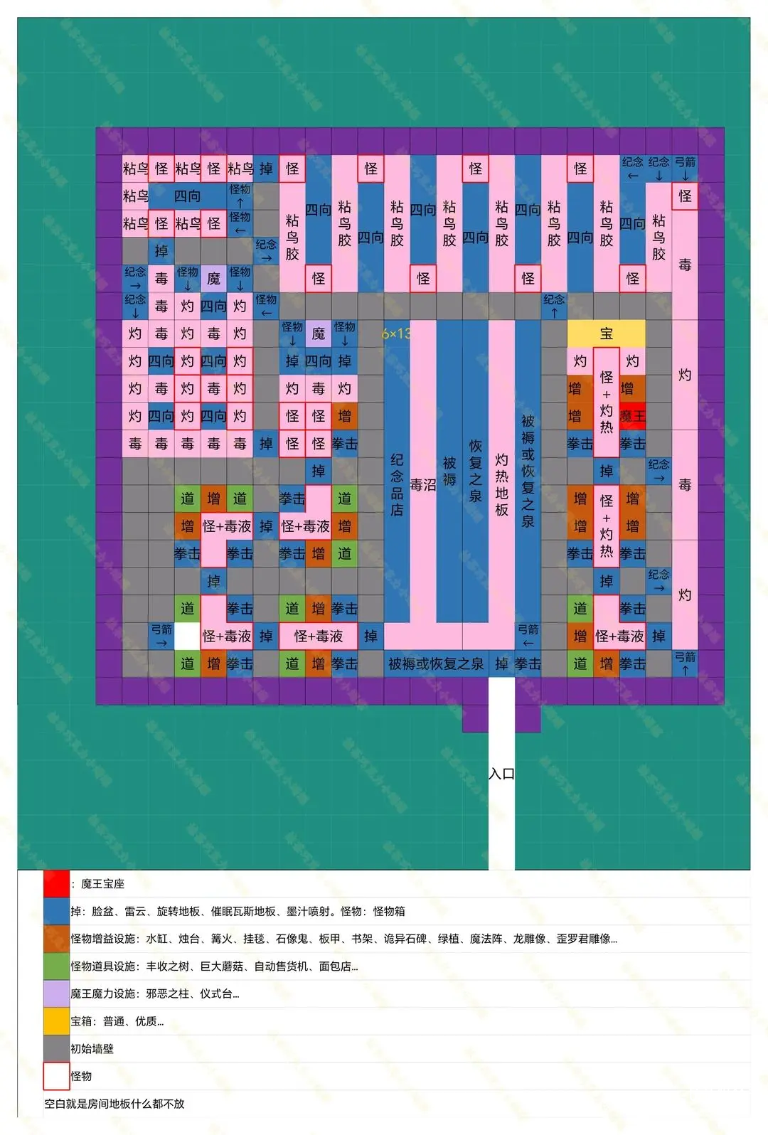14、新增开局的布局图。魔王宝座和宝箱可以随房间开拓进度挪动位置。