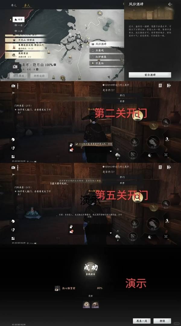 刷风沙酒肆方法:第二关和第五关开门其他关门即可速刷
