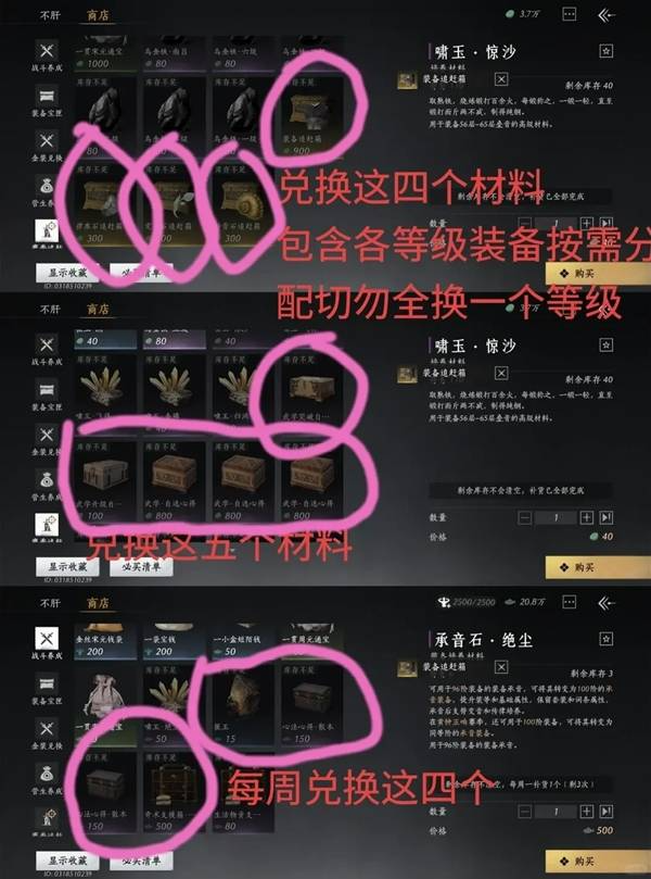 每周材料记得兑换:不肝商店10个、战令3个、武墓5个,回归还送6个!